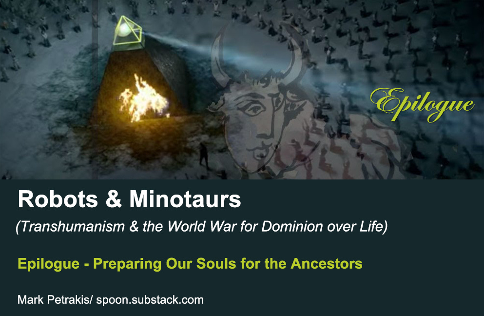I struggled as to whether to call this final section of my story here an epilogue or an epitaph. The distinction between the two became clear for me, as I began to dwell on the distinct possibility that humans, as we have long known them and ourselves to be, may not emerge from this current planetary WAR for control over LIFE and CONSCIOUSNESS with all our hereditary physical and metaphysical aspects intact.